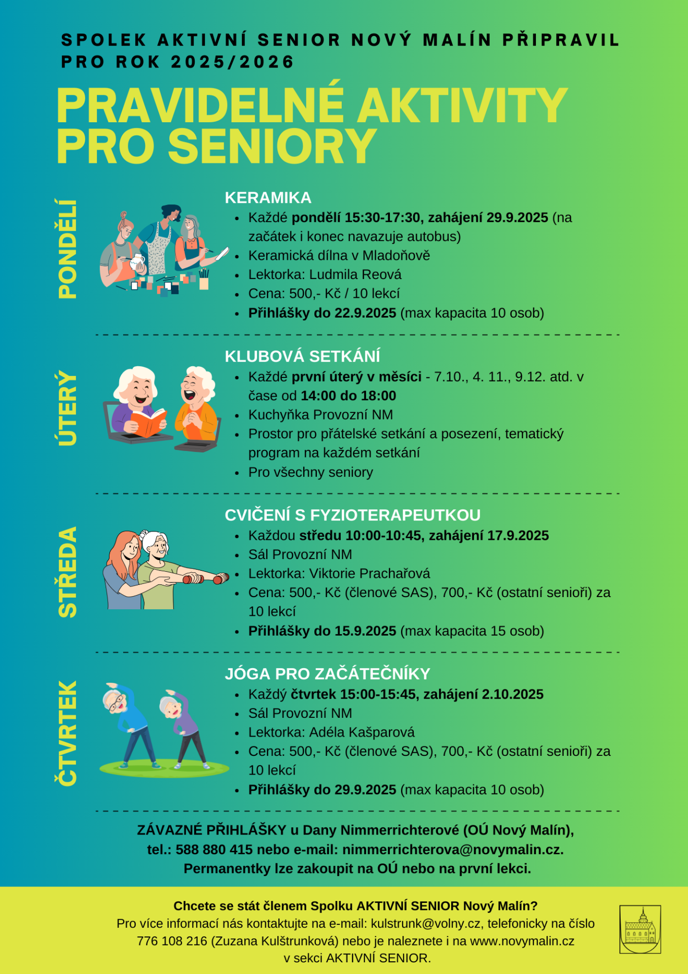 Nabídka aktivit pro seniory v Novém Malíně a Mladoňově.