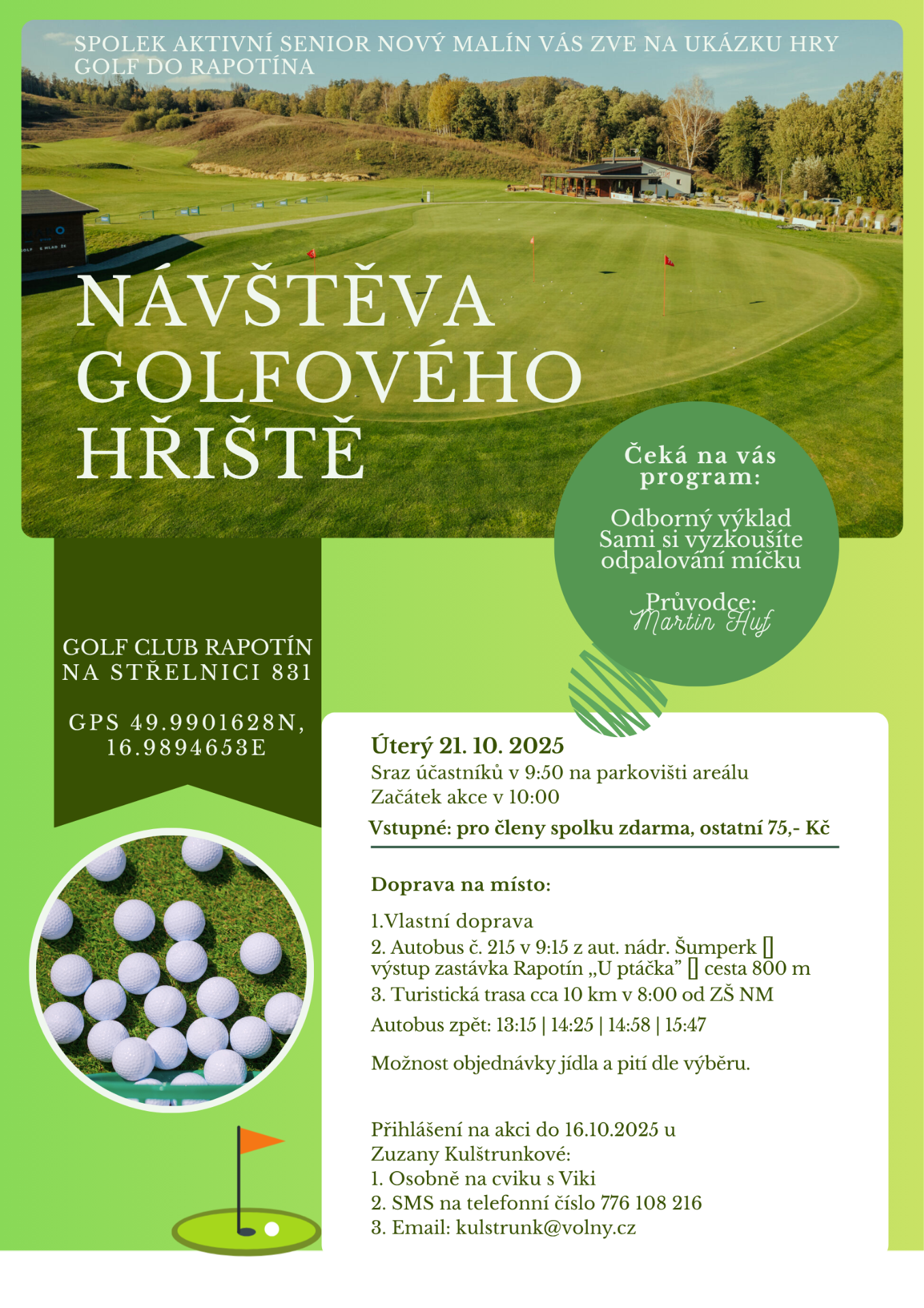 - 21.10. návštěva golfového hřiště v Rapotíně